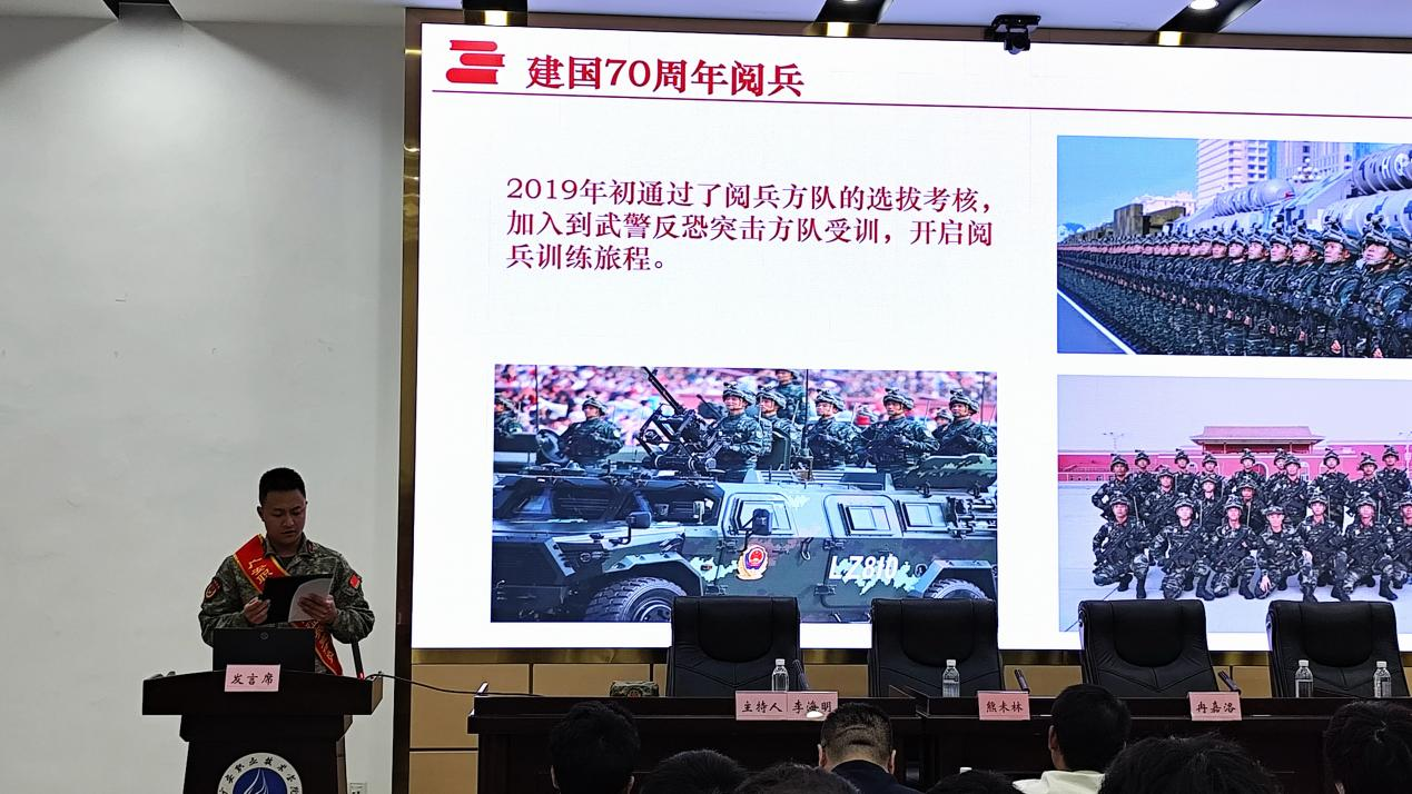 退役复学学生代表游显登、杨浩上台分享了个人从军经历。他们用朴实而真挚的语言,讲述自己在部队中艰苦训练、多彩生活,以及收获的成长与蜕变,并呼吁同学们踊跃报名、端起钢枪、保家卫国,实现人生理想。这些亲身经历让同学们真切感受到军队生活的多姿多彩,增强了同学们对军营的向往。