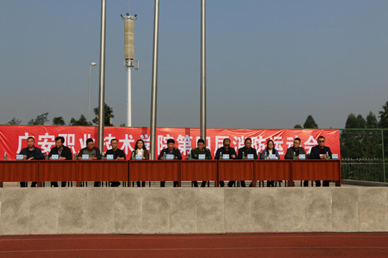 11月7日下午,广安职业技术学院第四届消防运动会在学校运动场隆重举行。学校党委委员、副校长张晓峰、市公安消防支队副支队长陈亚东等领导和学校2017级全体学生参加开幕式。