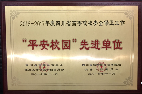 会上公布了2016-2017年度四川省高等院校安全保卫工作“平安校园”先进单位获奖名单,我校获此殊荣。同时,学校保卫处老师赵文军、杨丹获评保卫干部先进个人,王山华、代国建获评保安先进个人,肖旺、李松获评学生先进个人。
