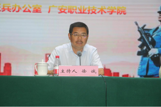 会议在雄壮的国歌声中拉开帷幕。张晓峰代表学校对各位领导的到来表示热烈的欢迎,对关心支持学校的建设发展表示感谢!全校上下正按照市委确定的“一手抓广安职业技术学院专升本,一手抓引进办大学”的工作思路,全力建设全国一流优质高职院校和创建本科层次职业学校。目前,学校正朝着目标大踏步前进的同时,狠抓师生国防教育,提高国防意识,号召广职学子踊跃报名,应征入伍,强化使命意识和责任担当,自觉将个人理想、抱负和国家的前途命运紧密相连,牢记强军目标,传承红色基因,苦练打赢本领,书写无悔青春。