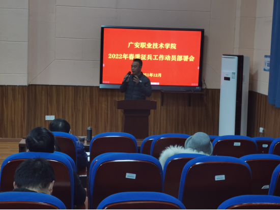 12月10日上午,我校在致用楼阶五(紫金厅)召开2022年春季征兵工作动员部署会。党委委员、统战部部长杨建华,二级学院党总支书记、副书记、毕业生班导师,招生就业处、学工部、武装部相关人员参加会议。
