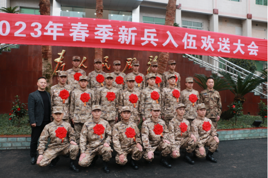 3月16日下午,新兵入伍欢送大会在区人武部隆重举行。学校武装部带着祝福与嘱托为学子们送行,黄宏芮部长代表学校向光荣入伍的学子们表示了热烈祝贺,并勉励大家要坚定报国之志,践行报国理想,在部队要严守纪律、服从命令、听从指挥、练就过硬本领,为国防事业、强军征程贡献出“广职力量”,不辜负学校、老师以及家人的期望,为广大同学树立好青春榜样。学子们身着戎装,胸戴红花,士气高昂,迈着整齐的步伐,分批次奔赴到祖国边疆、绿色军营,用青春和热血报效祖国。截至3月17日下午,送兵工作圆满结束。
