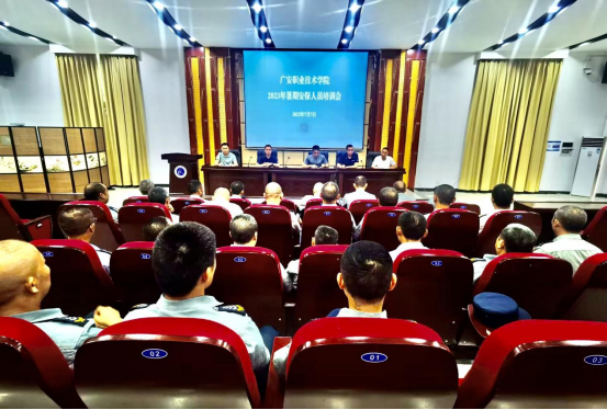 为进一步提高学校安保人员的业务素质,增强安保队伍的工作能力和服务水平,确保暑期校园安全稳定,7月7日下午,保卫处联合广盾安保服务公司在希贤厅组织开展了第三期保安业务培训暨2023年暑期安保人员培训会。会议由保卫处副处长杨刚主持。
